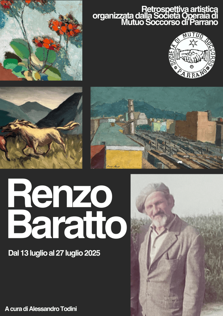 From July 13 to July 27, an art exhibition dedicated to Renzo Baratto will be on display at the Società Operaia di Mutuo Soccorso di Parrano.